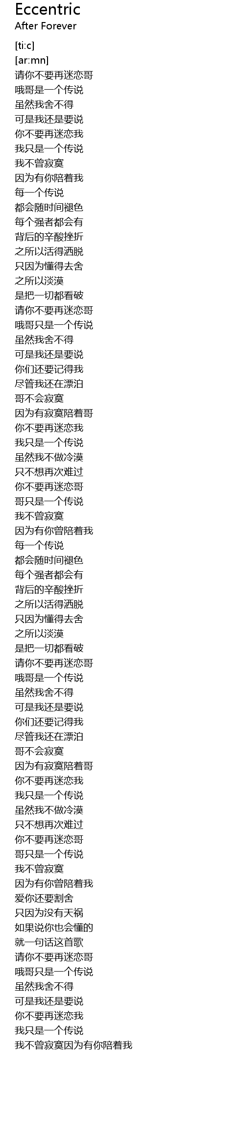 | [00:22.691] | wǒ zhǐ shì yí gè chuán shuō |