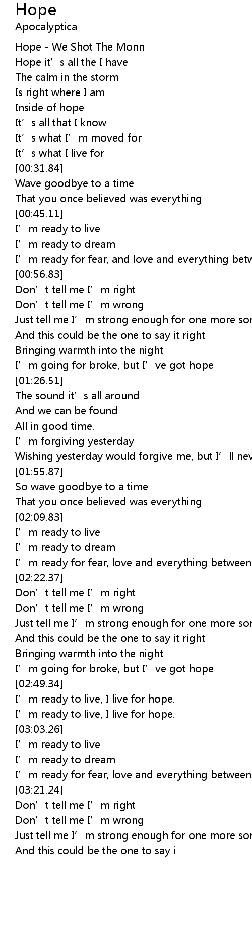 | [00:19.33] | Inside of hope |