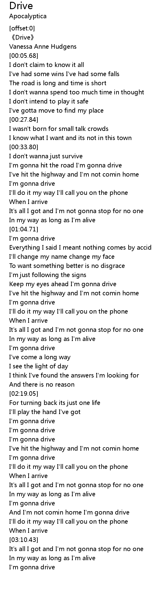 | [03:02.21] | And I'm not comin home I'm gonna drive |