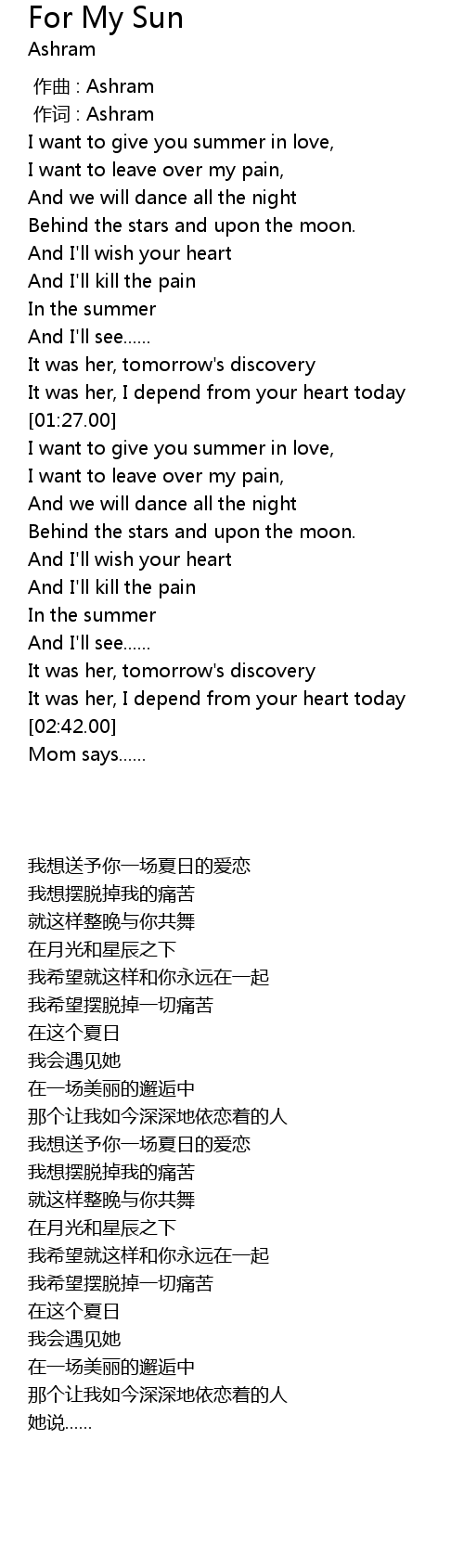 | 歌曲 | For My Sun |
