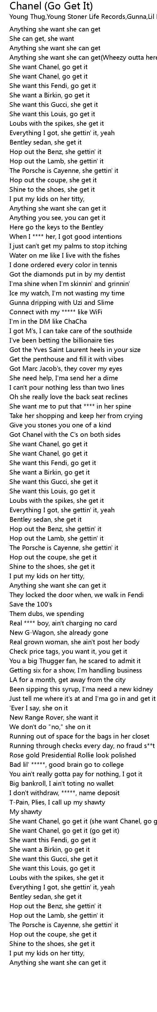 She want Chanel, go get it (she want Chanel, go get it) |