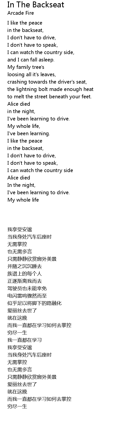 in the backseat, |
