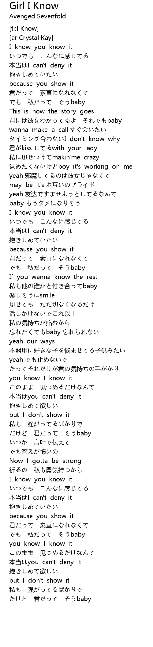 | [00:25.662] | 君には彼女わかってるよ それでもbaby |