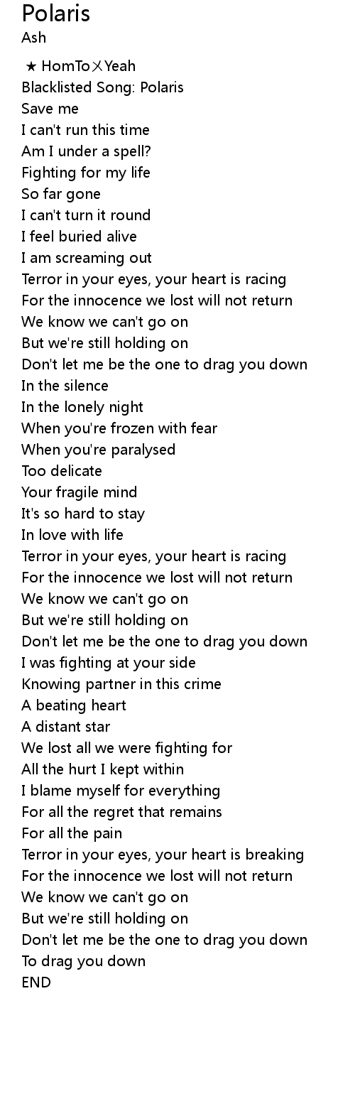 | [02:13.31] | Terror in your eyes, your heart is racing |