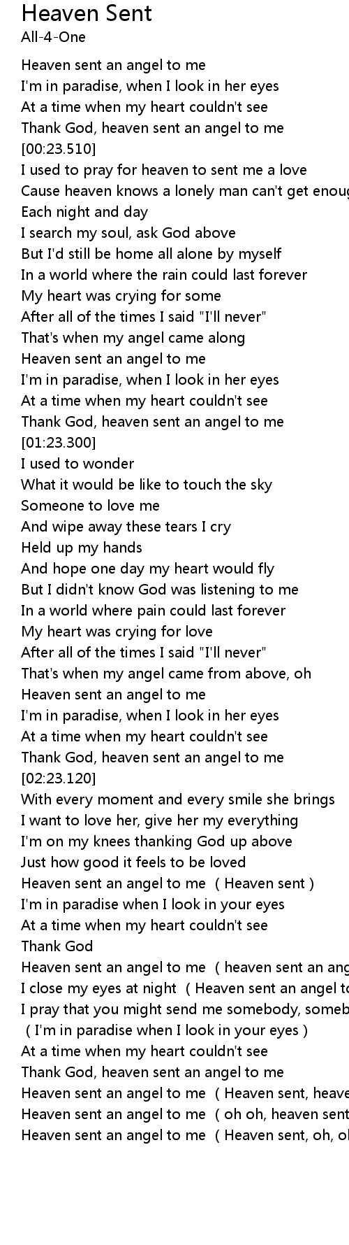 | [02:59.160] | Heaven sent an angel to me (heaven sent an angel) |