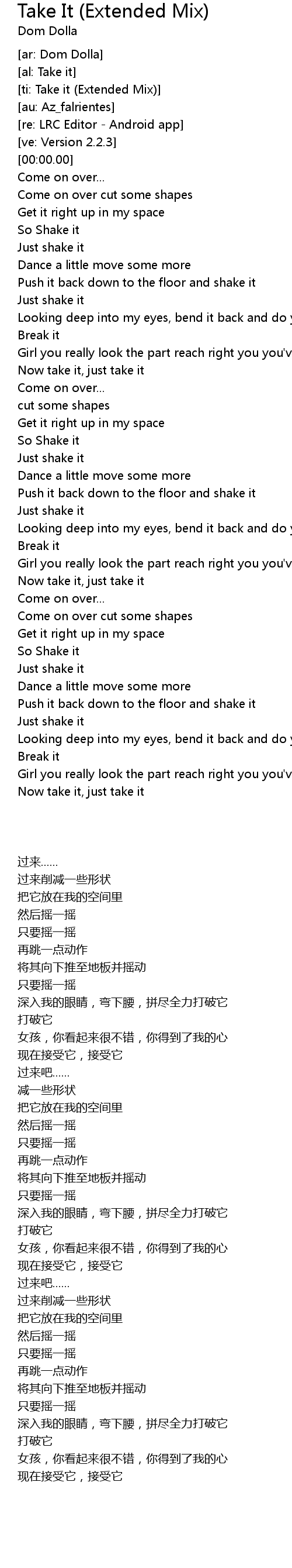 [ti: Take it (Extended Mix)] |