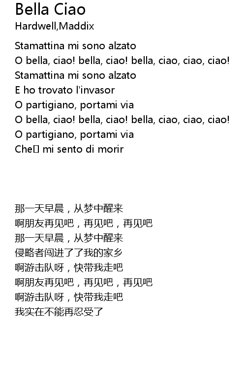 | [00:03.603] | O bella, ciao! bella, ciao! bella, ciao, ciao, ciao! |