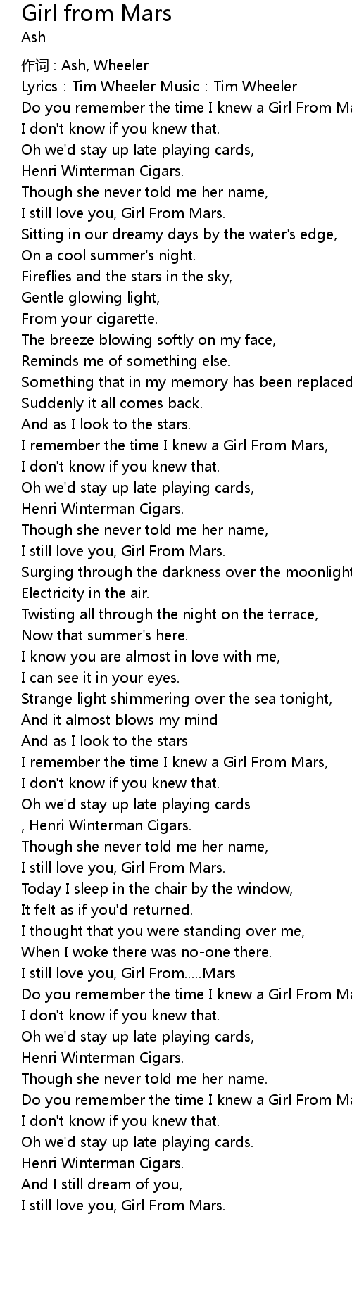 | Lyrics:Tim Wheeler Music:Tim Wheeler | |