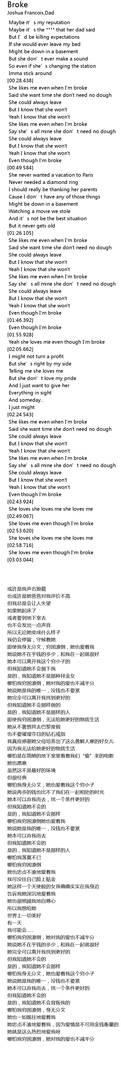 | [02:02.193] | Yeah she loves me even though I' m broke |