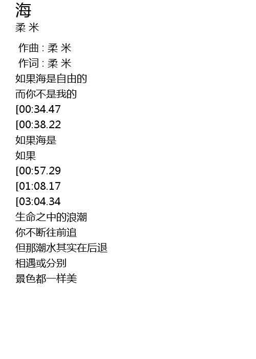 | [00:21.58] | rú guǒ hǎi shì zì yóu de |