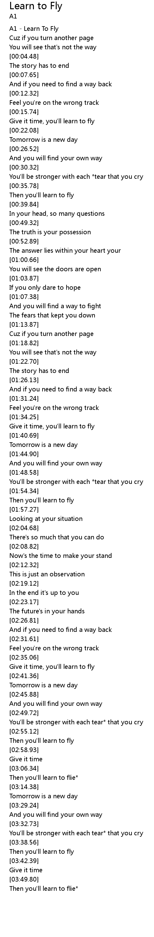 A1 - Learn To Fly |