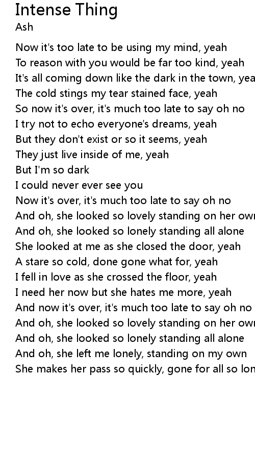 | Now it's too late to be using my mind, yeah | |