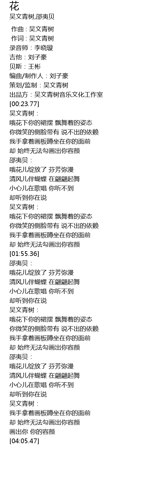 | [00:14.26] | 出品方:吴文青树音乐文化工作室 |