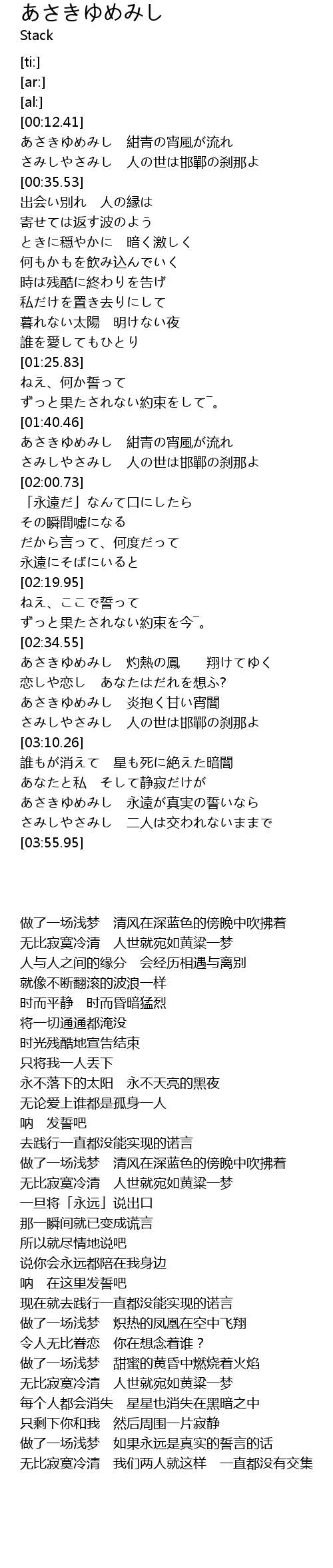 | [02:49.87] | あさきゆめみし 炎抱く甘い宵闇 |