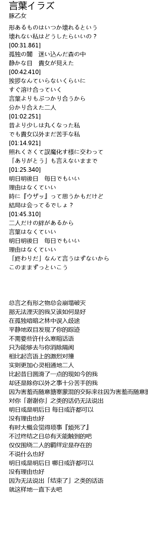 | [01:41.131] | 不过终结之日总有天能触到的吧 |