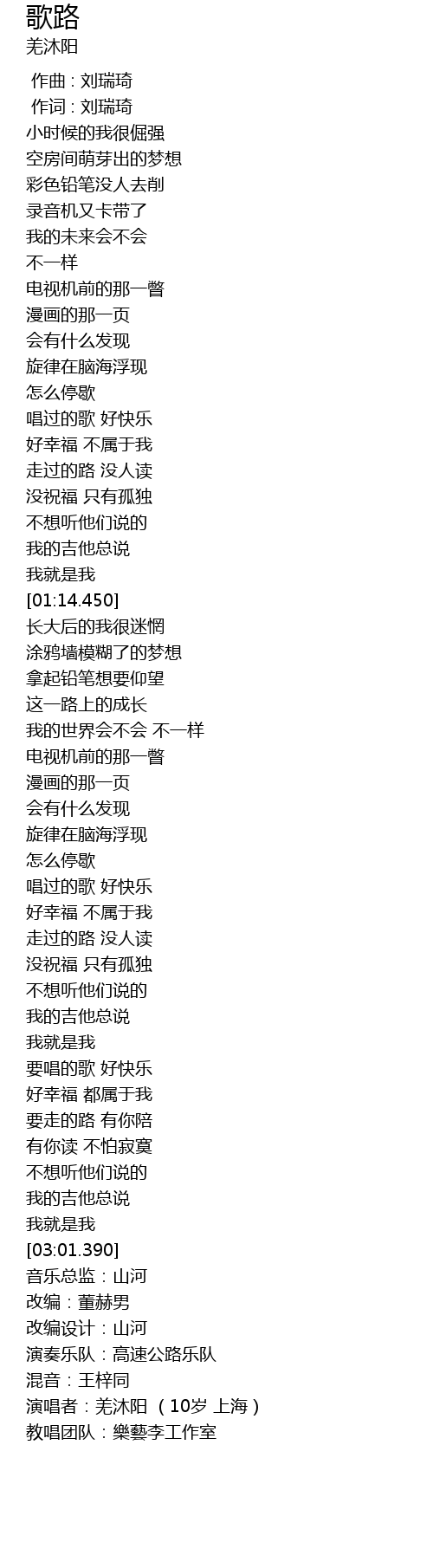 | [03:11.360] | 演唱者:羌沐阳 (10岁 上海) |