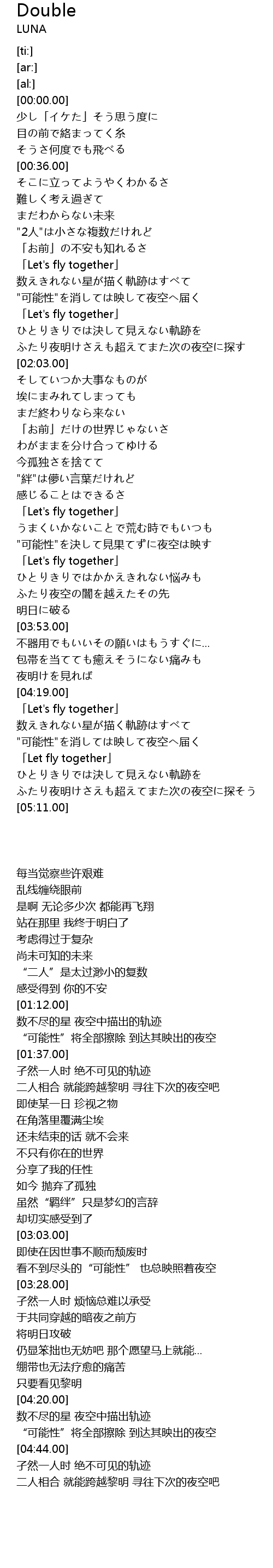 | [04:20.00] | 「Let's fly together」 |