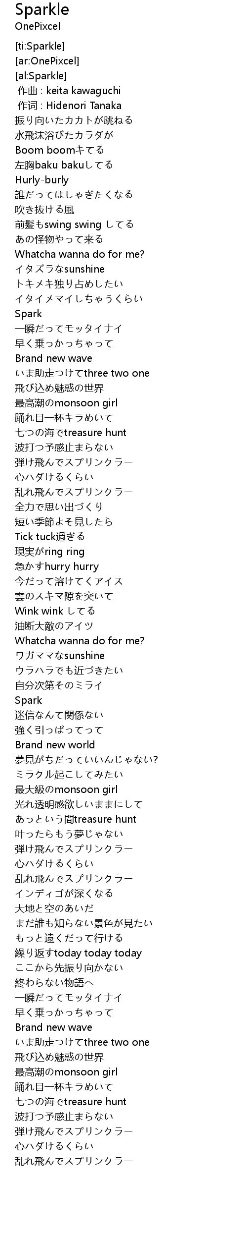 | [00:01.000] | 作词 : Hidenori Tanaka |
