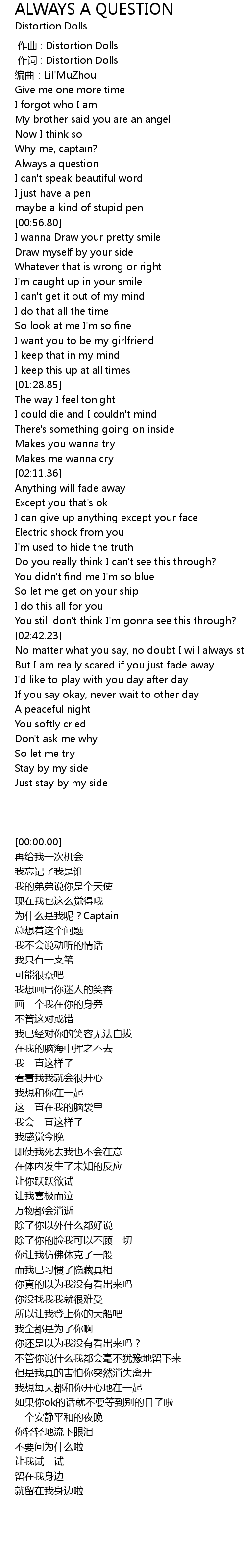 | [00:00.000] | zuò cí : Distortion Dolls |