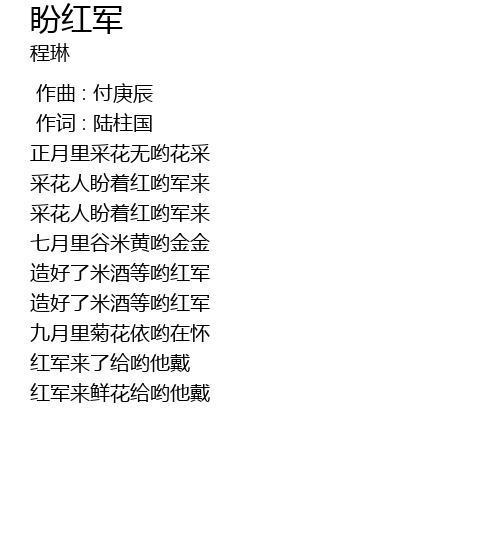 | [01:06.110] | 红军来鲜花给哟他戴 |