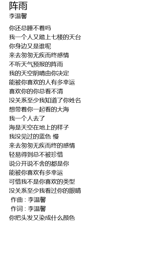 | 歌曲 | 阵雨 |