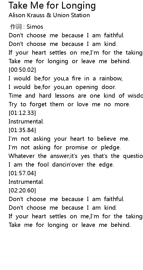 | [02:21.05] | Don' t choose me because I am faithful. |