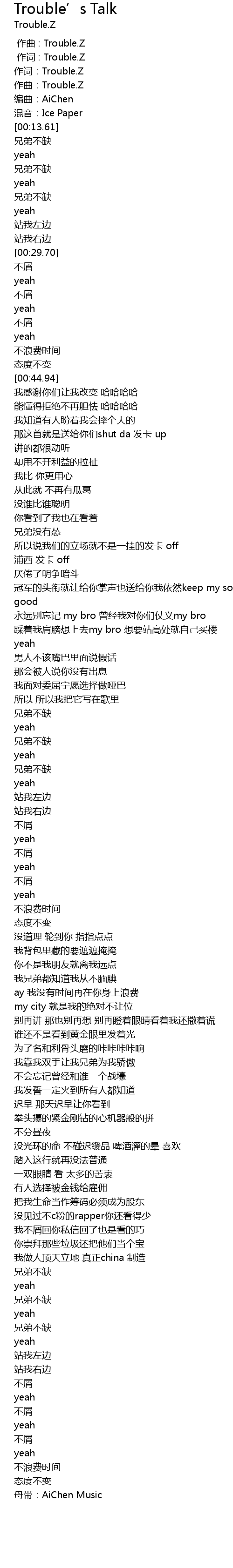 | [00:01.000] | 作词 : Trouble.Z |
