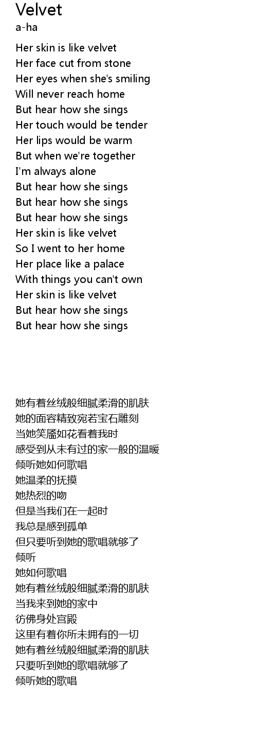 | [00:43] | 她有着丝绒般细腻柔滑的肌肤 |