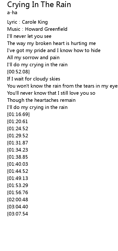| [02:56.13][01:56.76] | I' ll do my crying in the rain |