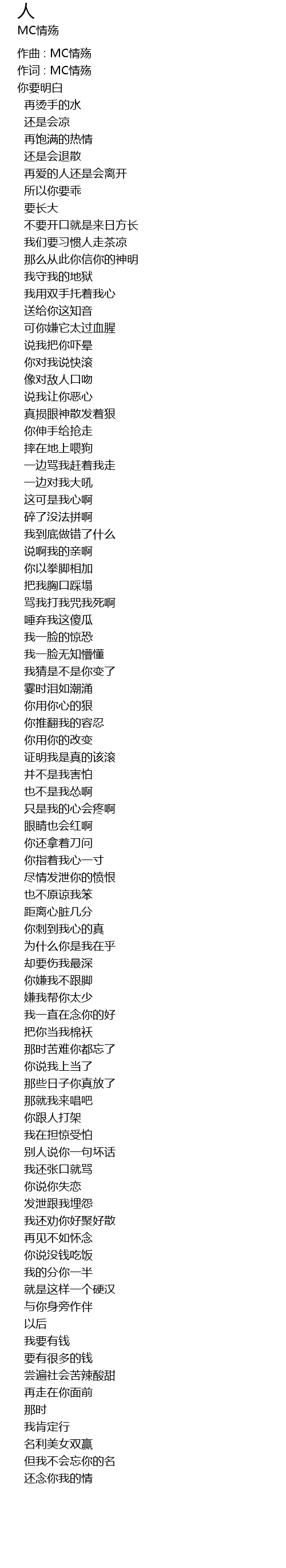 | 作词 : MC情殇 | |