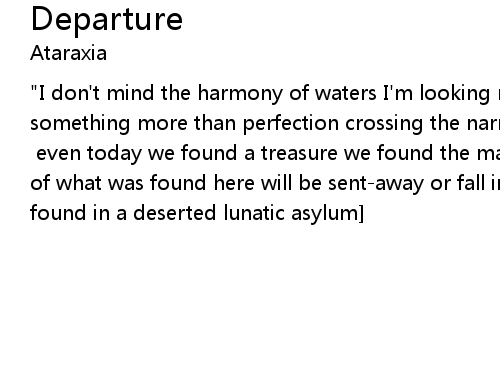 | "I don't mind the harmony of waters I'm looking nothing but dissonances something more than perfection crossing the narrow arch that I know" [passage from S. Quasimodo] even today we found a treasure we found the masks but nothing of what was found here will be sent-away or fall in wrong hands [inscription found in a deserted lunatic asylum] |