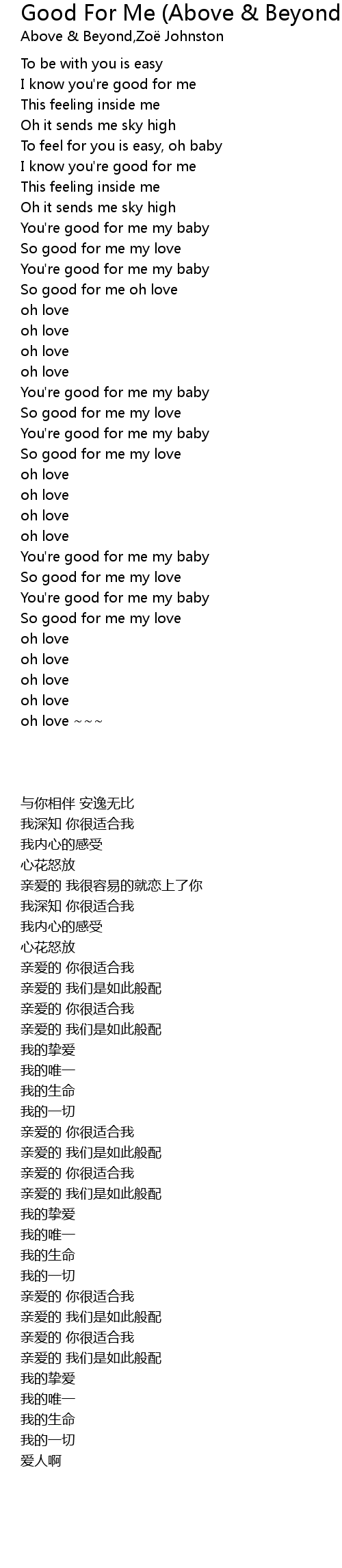 So good for me oh love |