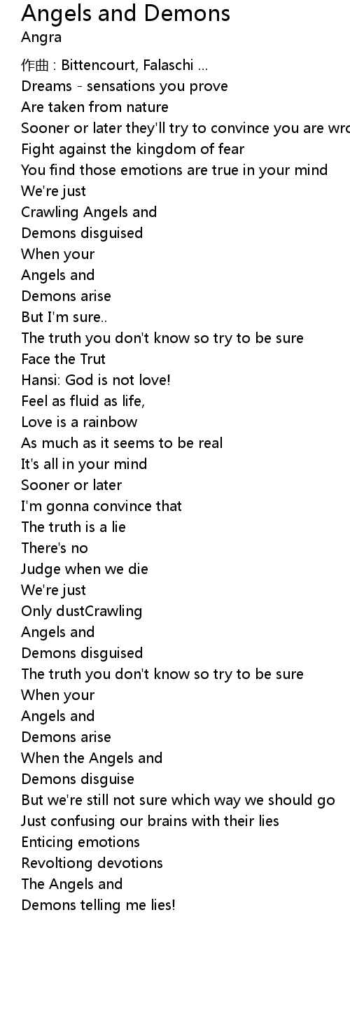 | 歌曲 | Angels and Demons |