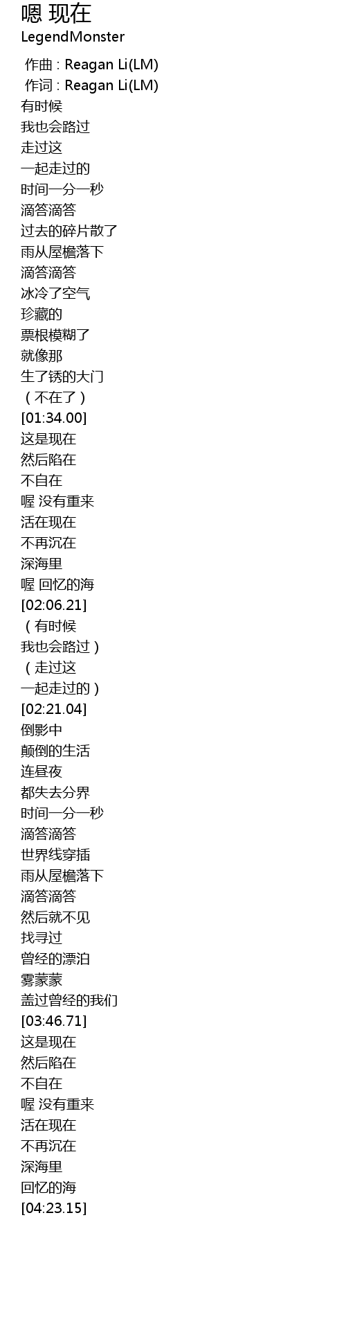| [00:01.000] | 作词 : Reagan Li(LM) |