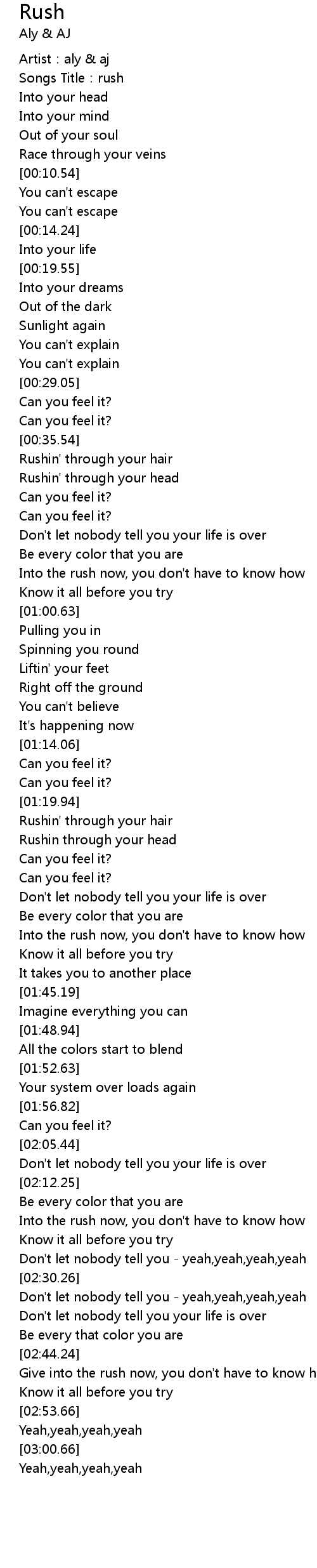 | [00:01.99] | Songs Title: rush |