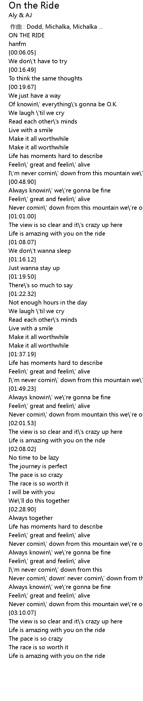 | [02:02.09] | The view is so clear and it\'s crazy up here |