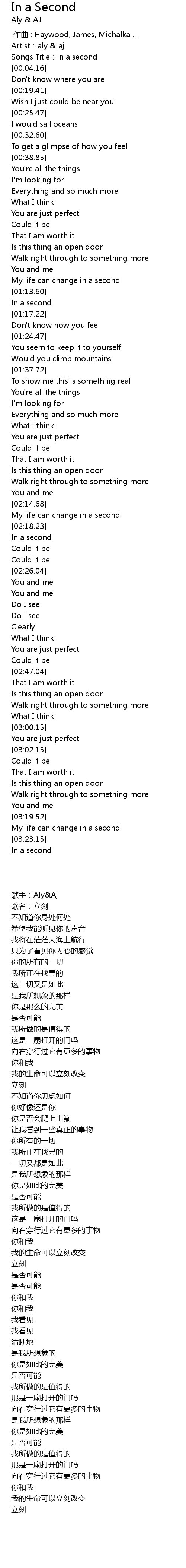 | [00:02.35] | Songs Title:in a second |