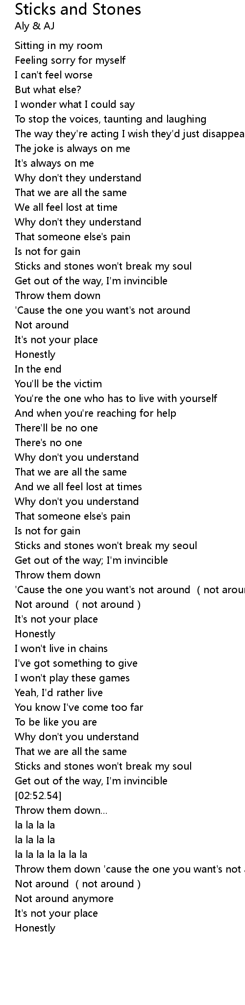 | [02:47.25] | Sticks and stones won't break my soul |