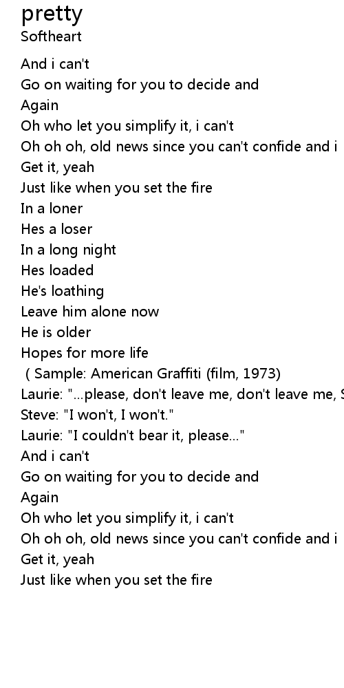 | [02:06.955] | Oh oh oh, old news since you can't confide and i |