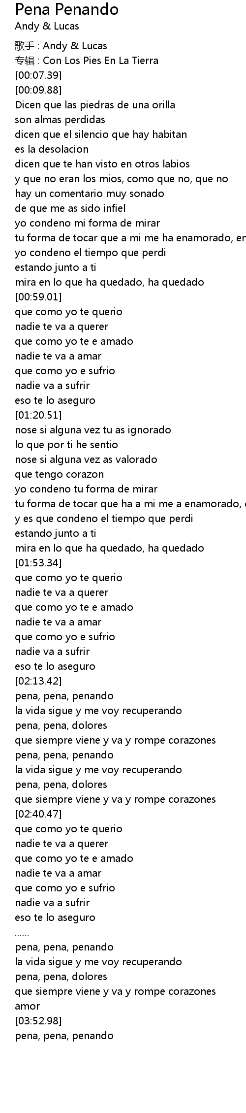 | [03:39.96] | pena, pena, penando |