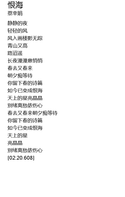 | [01:48.247] | 春去又春来朝夕痴等待 |