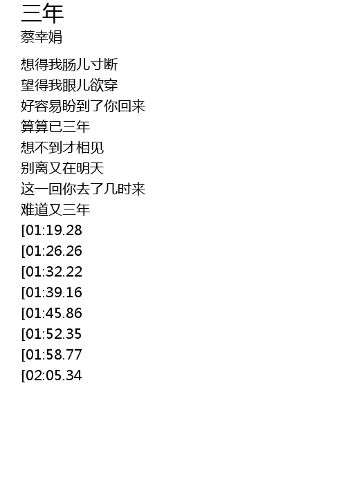 | [02:38.18][01:32.22] | heng san nian shu san nian |