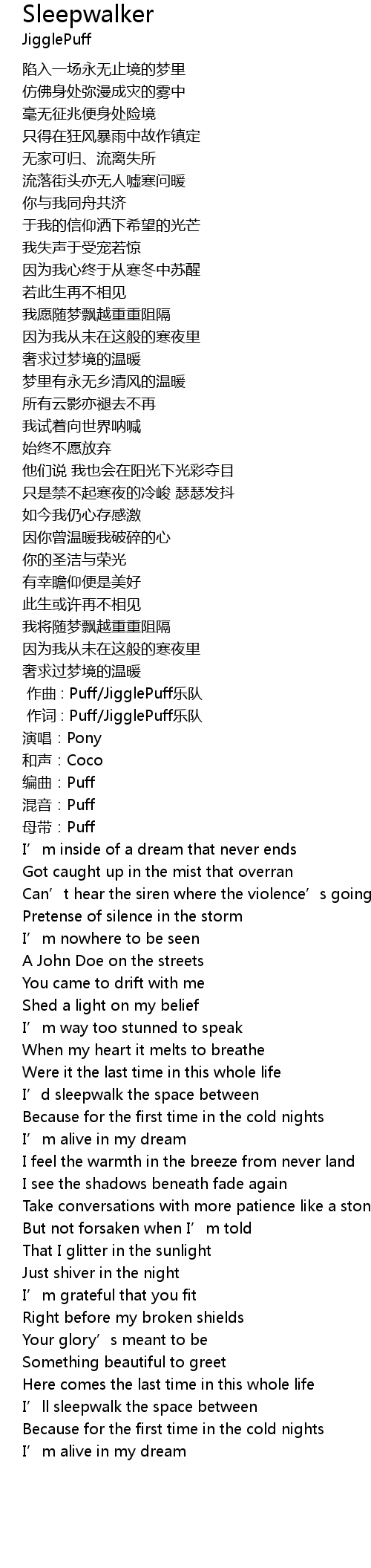 | [00:00.690] | 作词 : Puff/JigglePuff乐队 |