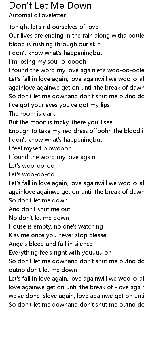 So don't let me downand don't shut me outno don't let me downand don't shut me outno don't let me down |