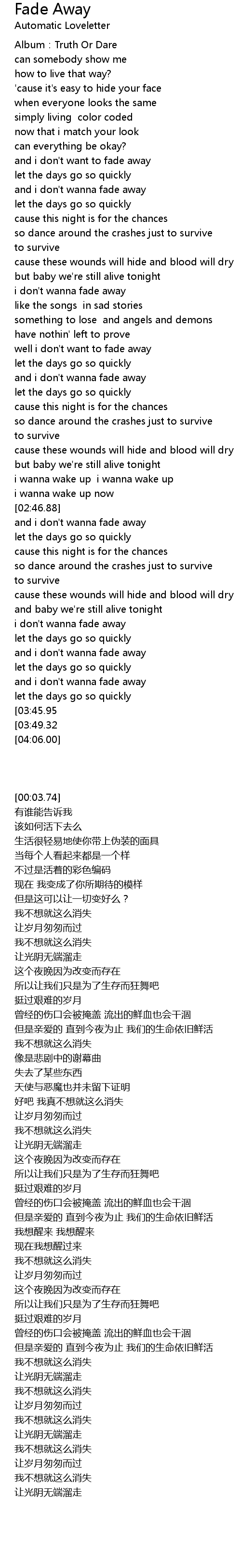 | [03:54.70][03:45.95] | and i don't wanna fade away |