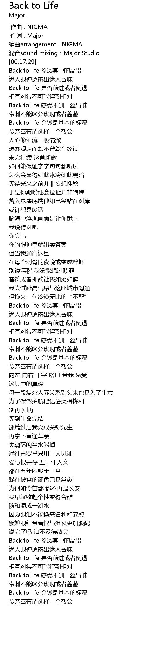 | [02:56.52] | Back to life 金钱是基本的标配 |