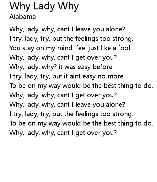 Why, lady, why, cant I get over you? |