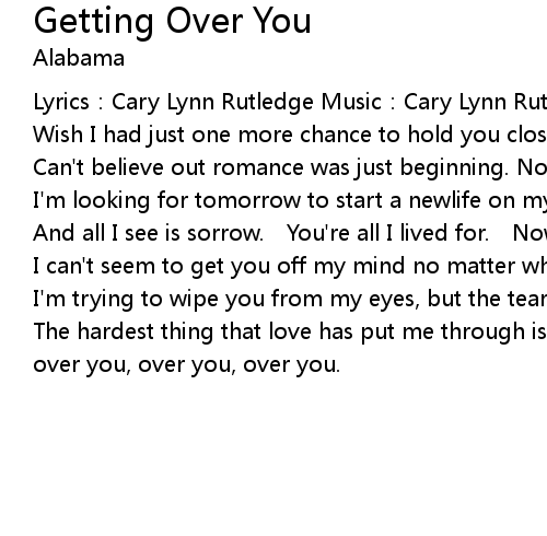 | The hardest thing that love has put me through is gettin' over you, gettin' | |