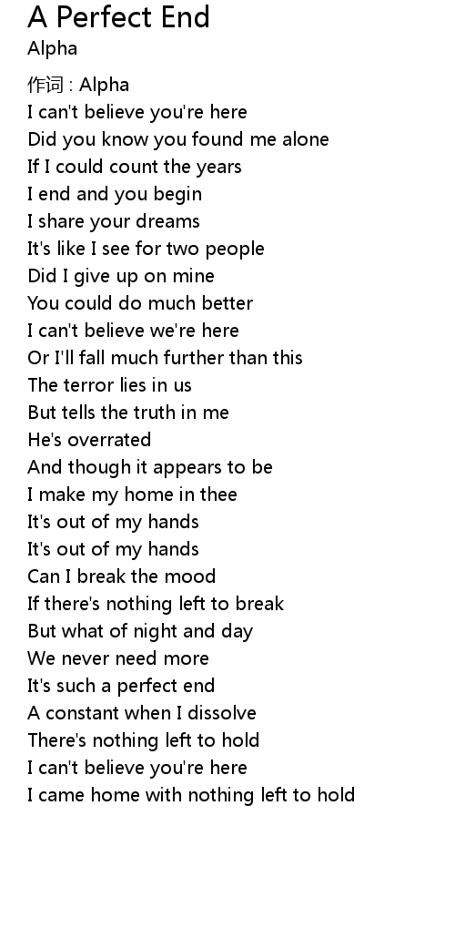 | 歌曲 | A Perfect End |
