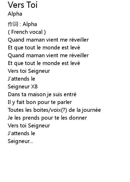 | 歌曲 | Vers Toi |